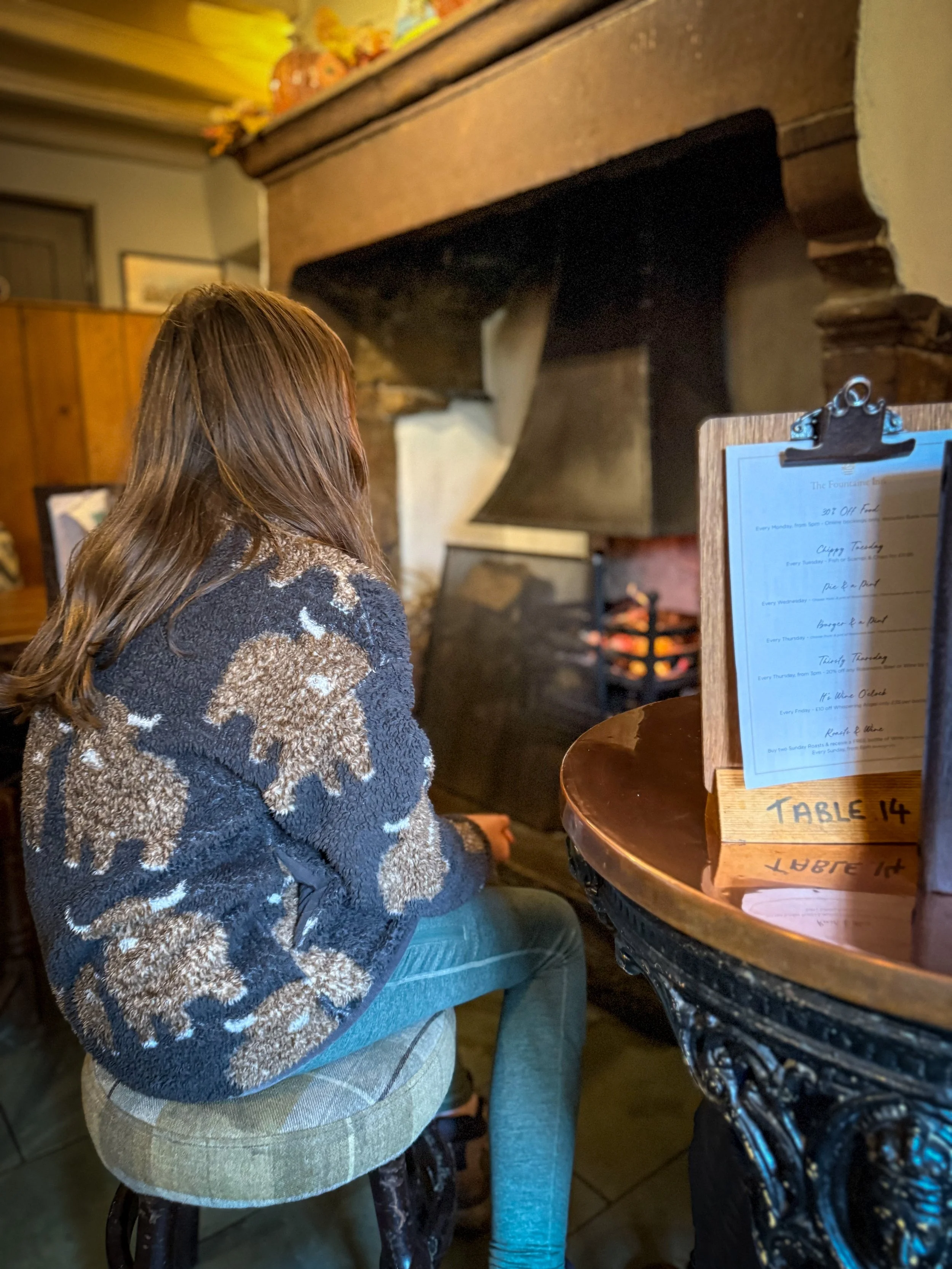 The Fountaine Inn, next to the cosy fire!